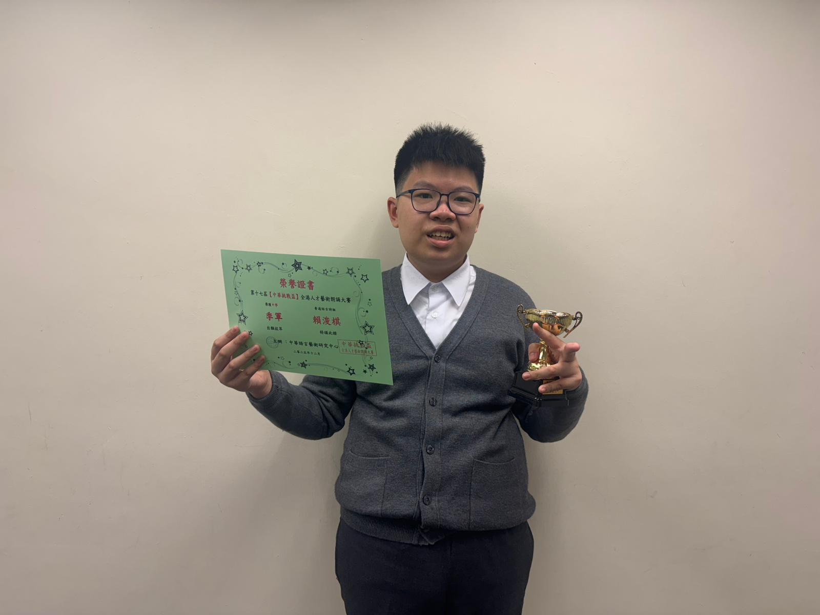 第十七屆【中華挑戰盃】全港人才藝術朗誦大賽本校賴浚棋同學參加於香港文化中心舉行的「第十七屆『中華挑戰盃』全港人才藝術朗誦大賽」,憑著一首李白《靜夜思》,成功挑戰自己,榮獲普通話朗誦季軍。