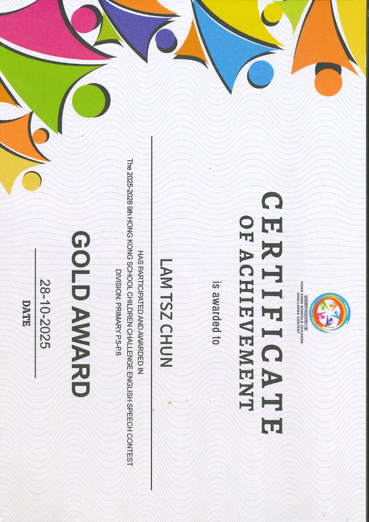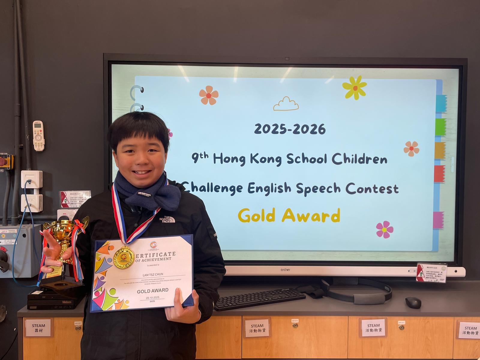 本校於2025-2026年度第九屆學界兒童中英文朗誦挑戰大賽中獲得金獎